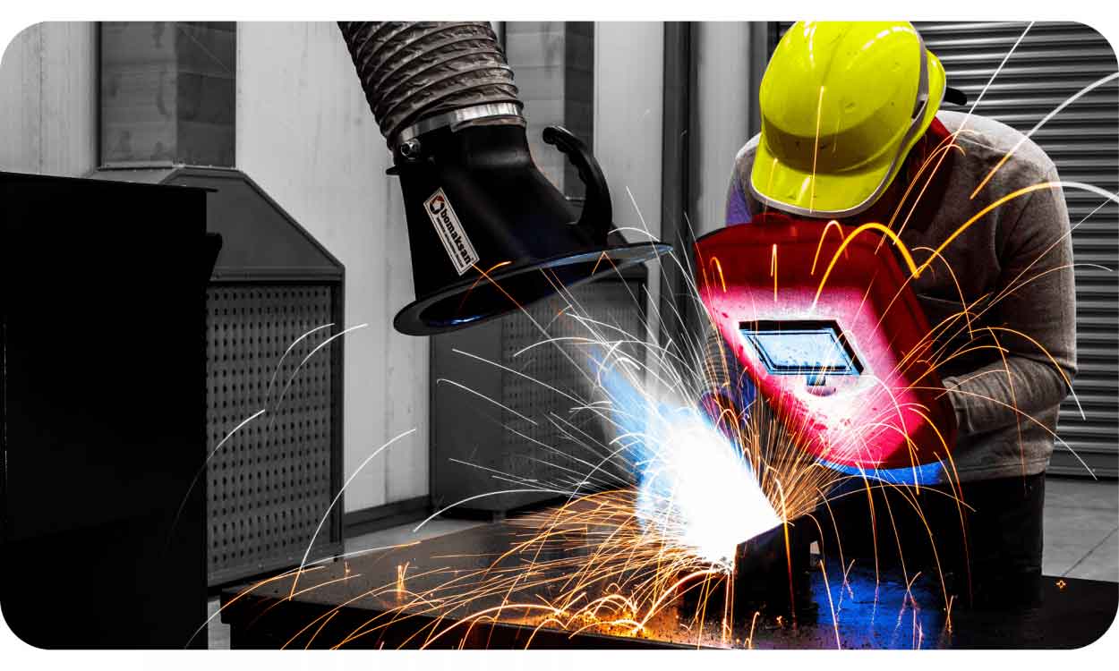 זרוע יניקה תעשייתית מדגם Akrobat PLUS מספקת פתרון יעיל לשמירה על סביבת עבודה נקייה ממזהמים, באמצעות שאיבה נקודתית של עשן ואבק – לפני שאלו מתפזרים בחלל המפעל.
